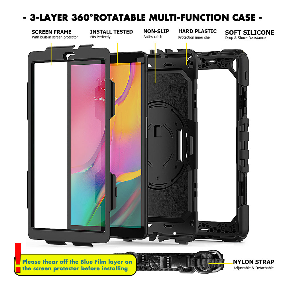 - Material - 3 in 1 layers design case has the front bump cover, soft silicone frame and hard Poly-carbonate shell provides full device coverage for galaxy tab a 10.1 2019.