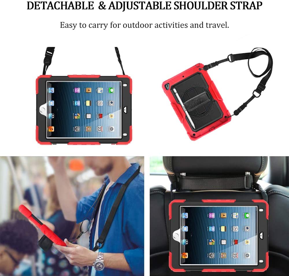 ✦Shoulder Strap → Adjustable and Detachable Shoulder Strap. Let you carry your iPad on any Occasion, such as traveling, car seat, Office, and classroom, and so on. You can also take the shoulder strap off when you don't need it.